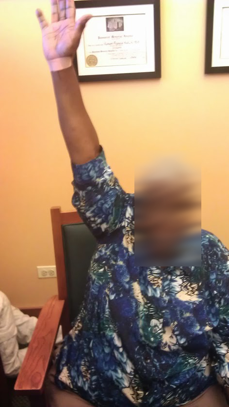 This is one of my first shoulder replacements, from 2010. 60-year old female with severe right shoulder arthritis, severe pain, stiffness, and grinding. On presentation, she was able to forward flex her shoulder only about 45 degrees, and with severe pain.